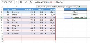 La Frutta era in colonna 2, ma dopo l’inserimento di una nuova colonna è passata in colonna 3. Tuttavia, il CERCA.VERT non si è aggiornato automaticamente.